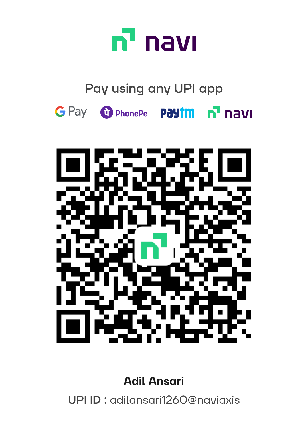 Jio Payments Bank account details. Name: Adil Ansari Account Number: 003321712793852 IFSC code: JIOP0000001 UPI ID :- adilansari1260@naviaxis